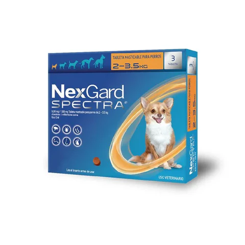 NexGard Spectra – Antiplagas masticable desparasitante externo e interno para perro XS 2 a 3.5 Kg 3 tabletas